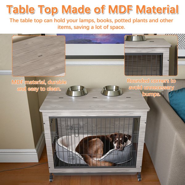 [Multi-Functional]This pet furniture can be used as pet crate, side table, end table or night stand. The wide top provides enough place to put some decorations such as small/medium plant, magazines, family picture frames and night lamps and so on.