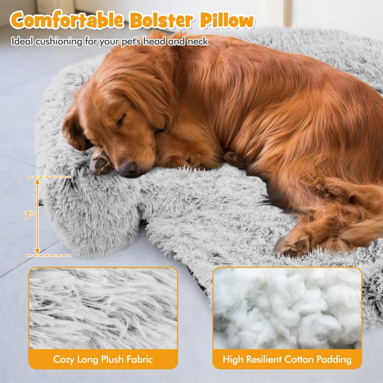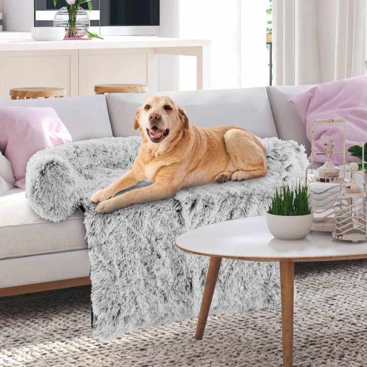 Gray Plush Calming Dog Couch Bed – Anti-Slip Bottom